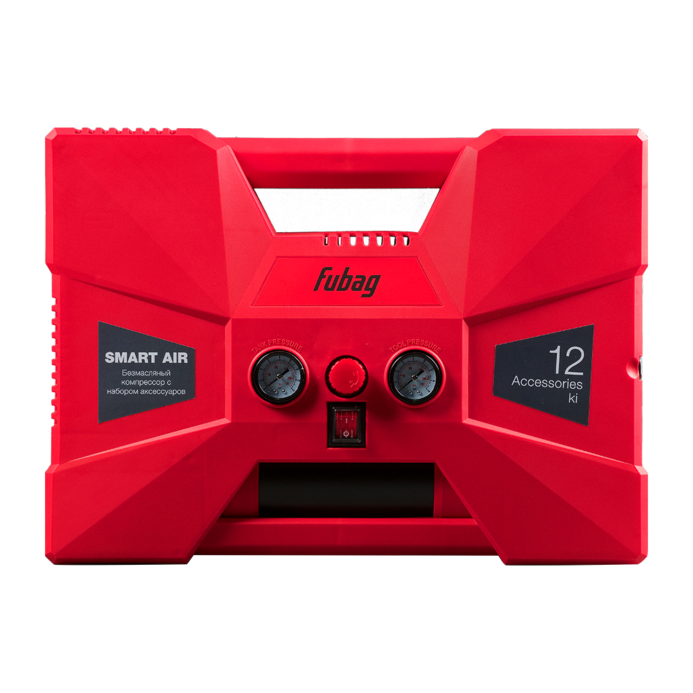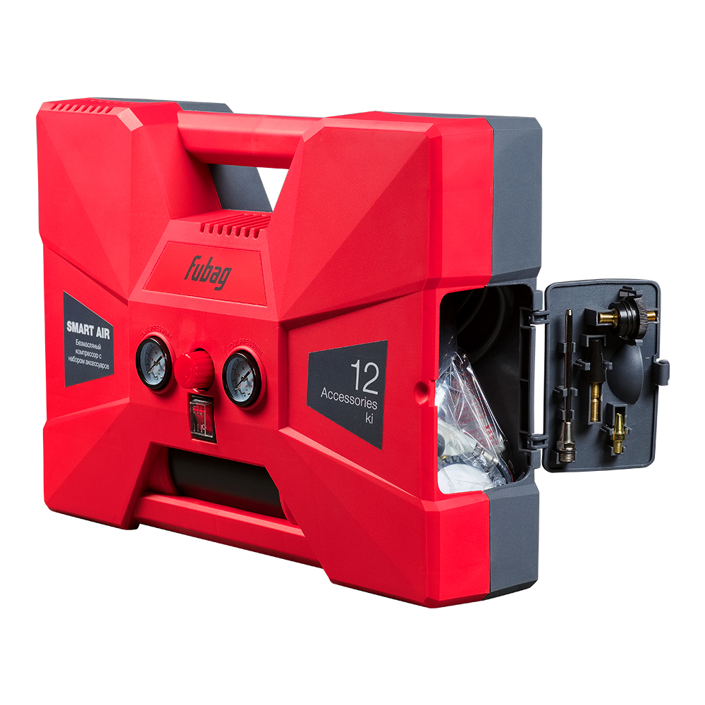 Многофункциональный набор FUBAG Smart Air — готовое решение для работы со сжатым воздухом. Набор собран на базе коаксиального безмасляного компрессора с ресивером на 2 литра. Комплект предназначен для накачки колес, мячей, матрасов, продувки и чистки поверхностей. Всё оборудование компактно размещено в корпусе, выполненном в виде удобного чемодана для транспортировки и хранения.