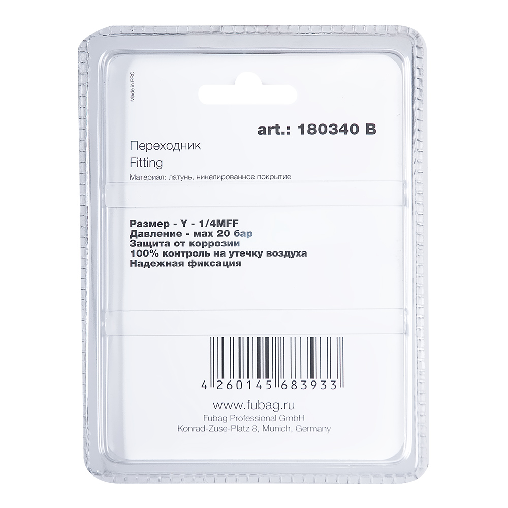 Характеристики FUBAG Переходник Y - 1/4 дюйма MFF, блистер 1 шт