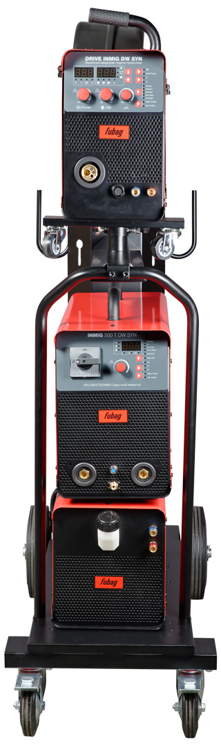 Сварочный полуавтомат INMIG 500T DW SYN + Подающий механизм DRIVE INMIG DW SYN + Шланг-пакет 5 м + Горелка FB 500 3 м + Блок жидкостного охлаждения + Тележка