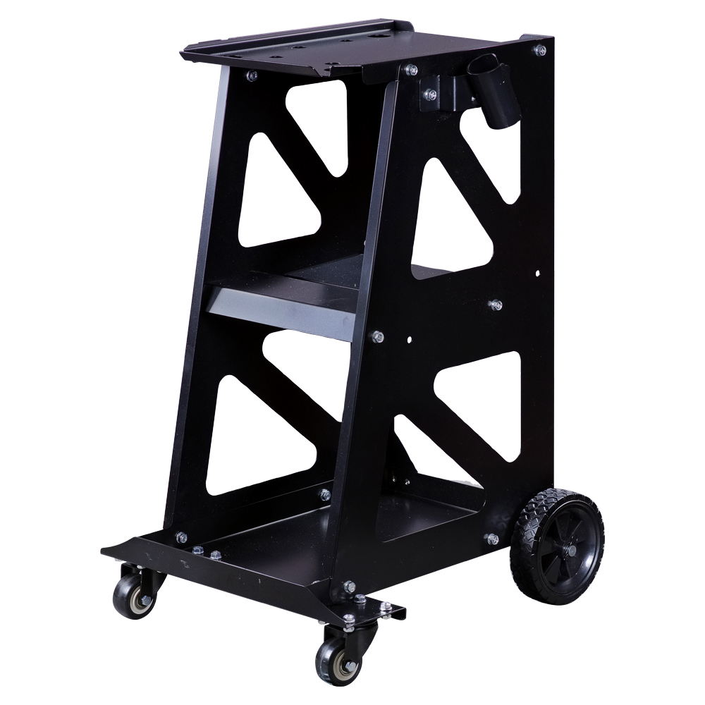 Конструкция на четырех колесах: 2 передних поворотных, 2 задних фиксированных на оси. Верхняя площадка с 4 отверстиями под резиновые ножки аппарата обеспечивает надежную фиксацию. Перемещение осуществляется за ручку самого аппарата.